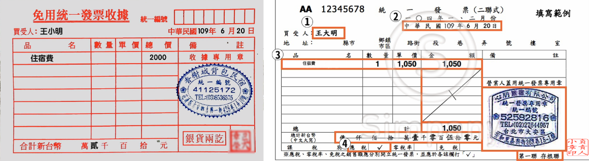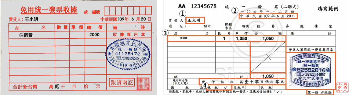 需要。在買受人/台照,寫上住宿人姓名(可手寫),限用原子筆書寫。手寫式發票需蓋有發票章、收據蓋業者大小章。